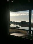 Отель расположен в очень живописном и отдалённом тихом месте, территория ухожена, общий вид - просто потрясающе, восторг. Но Место излюблено местной молодёжью, поэтому вечером прямо у ворот отеля подростки вели себя достаточно громко и вызывающе, от запланированного вечера у кострища пришлось отказаться, удивительно, что трехэтажный мат не смущает сотрудников отеля, учитывая, что все действие разворачивается прямо у ресепшена. Рядом с отелем есть конюшня, вид с парковки прямо на пони, запах причём чувствуется не сильно и только на береговой линии, в стороне корпусов с номерами воздух чистый. Персонал приветливый, вежливый, но к самим номерам есть вопросы. Бронировали семейный люкс с сауной, номер выглядит немного уставшим - ободранные плинтуса, подтеки на сантехнике и трубах, нет наборов с гелем для душа и шампунем в индивидуальных упаковках (а те душевые принадлежности, что есть - грязные в налете тоже + нам показалось, что в обеих банках одно и то же средство), тапок для гостей тоже нет, хотя пол без коврового покрытия и нам показался достаточно холодным, ходили греть ноги в душ и на второй ярус-там над сауной пол горячий. Чайная станция с налетом, заварить чай там просто побоялись. На полу было грязно, причём не только в общем коридоре, но и в номере. Ребёнок увидел простор под кроватью и, естественно, залез туда, вылез весь в пыли, я такое не ожидала увидеть в отеле от слова совсем. В общем к уборке есть прямо серьёзные вопросы. Из самых неприятных минусов,с которыми мы столкнулись, - это сауна. Она есть, она работает (хотя разобраться с ней было трудно ввиду стертых с ручек обозначений), но доски на полу отваливались и самое неприятное - нижняя полка-ступень никаким образом не закреплена, она опрокинулась, когда я встала на неё, попытавшись забраться на верхнюю полку поближе к камням. Мое счастье, что сауна маленькая и я успела руками упереться в стены, но у меня были все шансы приземлиться лицом прямо на раскаленные камни во время этого падения. Так что будьте осторожны. Завтрак в отеле достаточно скудный, но и ресторан сам по себе маленький. Однако, блюда были вкусные. На территории отеля есть ещё и прокат спортивного инвентаря и мангальная зона, мы не пользовались, но возможность пожарить мясо с видом на красивый закат прямо-таки грела душу) В целом мы отлично провели время с семьёй, но грязь в номере и инцидент с сауной оставил некоторый отпечаток.