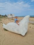 Если честно, то впечатление двоякое. Изначально задумка превосходная. Широкий пологий пляж, пешеходная дорожка тянется через весь город вдоль всей береговой линии. Красота. Но. Фонари вдоль этой дорожки горят далеко не все. Вода не подведена ни к одному питьевому фонтанчику. Душевые и ногомойки работают процентов 15. Инфраструктура задумана прекрасно, но её уже начали убивать. Детские и воркаутные площадки частично сломаны.