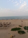 Пляж центральный, думали что здесь будет чисто, но нет бездомные собаки которые делают свои дела в песочке. Коровы свободно гуляющие по пляжу и в море не прочь зайти, в мусорках полакомиться. А еще вонь канализацией откуда???? С туалетами вообще проблема. Вероятно поэтому в душевых пахнет мочой. Да еще почему то прогулки на лошадях проходят по пляжу. 🤦‍♀️между отдыхающими сидящими на песочке. А так же есть и такие отдыхающие которые устраивают «дрифт» на машинах по песочку. Супер весело! Кому такой отдых? Мы жили 5 дней. И ни разу с пляжа не вывезли мусор, а это в жару 29 градусов. А еще кругом сплошные стройки, но так что вокруг валяется строительный мусор.