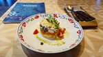 Филе сельди, свекла, морковь, картофель, яйцо, лук, заправленные майонезом, подаются с ростками гороха