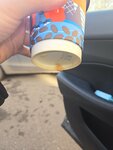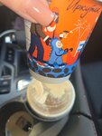 Мало того ,что заказ был собран и стоял за прилавком, а девушка делала вид что не видит что я подошла, пока другой сотрудник не подошёл отдавать другой заказ, так еще весь кофе оказался не в стакане, а в машине