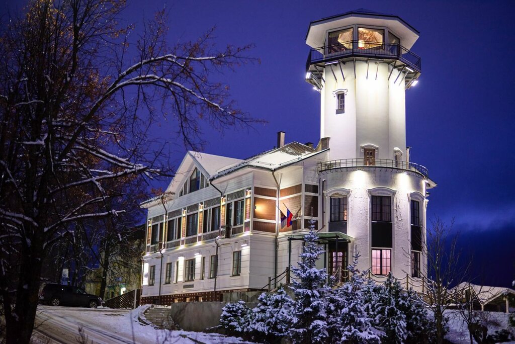 Отель в маяке: необычно. Удобные номера, хорошая мебель. В нашем номере 307 на 3 этаже были 3 двуспальных кровати с удобными матрасами и подушками, качественным бельем. Также в номере был душ и туалет и отдельно маленький туалет, что на 4 гостей действительно удобно. Завтраки на выбор: яичница или каша плюс блины или сырники. Чай, кофе, яблоки. Все было съедобно. Минусы: стоимость номеров. Также не понравилась еда вечером в ресторане. Ни вкус, ни подача, ни обслуживание не стоят своих денег. У такого характерного отеля очень печальное меню с цезарем, борщом, пиццей, жарким. Ну что это за сочетание? Официанты не обучены простейшим принципам работы. Грязную посуду не убирают, хлеб не предлагают, приборы приносят после подачи блюд. Так слона конечно не продать.