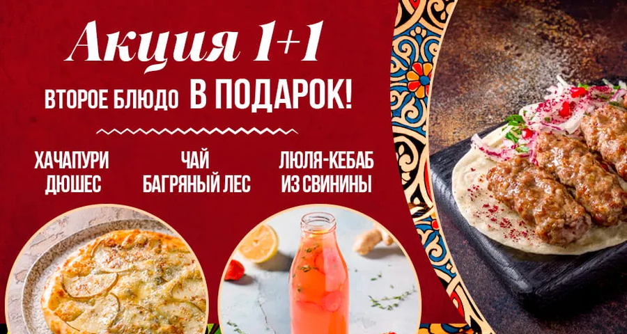 Акция 1+1 на доставку во всех ресторанах Дюшес