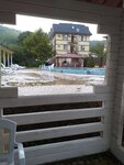 Отдыхали семьей из 4 человек в августе этого года. Гостиница хорошая. Номер мы бронировали мансардный. Он получился их 2х комнат-студии. Большая круглая кровать и разборный диван. Удобства в номере. Единственное, что было грязновато в номере, но это вопрос к уборке. На территории большой бассейн разделен на детскую зону и взрослую, несколько беседок. Мне не хватало подвесных цветов в беседках, которые создают уют. Эта гостиница без питания, хотя есть кулер и свч печь. Рядом есть столовая "Светлана", где можно вкусно и не дорого покушать, шашлыки там самые лучшие! Сходите и не пожалеете.