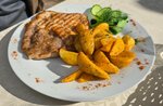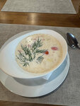Заслуженная четверка) Место пользуется популярностью, но мало посадочных мест и долгое ожидание блюд. Жаль, что много из того, что хотелось - не было в наличии. Заказывали суп с форелью, очень сливочный, не хватало специй. Стейк из палтуса супер, подача на фирменной доске с гарниром - 800₽, вкусно. У нас были перепутаны пельмени с соседним столиком, но официант без вопросов поменял. Рейтинг снижать не хочу, в этом городе выбора практически нет. Наелись до отвала.