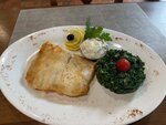 Попал в ресторан случайно просто шел по дороге Очень милое и современное здание отеля Помещение ресторана очень небольшое Стилизовано под Британию или Финляндию Такой милый новодел Сотрудники очень молоды активны Меню в отличии от помещения отеля очень истрепаное Заказал финский суп Филе рыбы и шпинат Все очень хорошего качества Красиво вкусно Размер порции достаточный чтобы наесться Все точно готовится из свежих продуктов , а не разогревается из полуфабрикатов Готовится долго Но оно того стоит Очень удобная тарелка для супа Удивительно вкусные сверх тонкие ломтики лимона Отличный соус тартар в металической креманке Шпинат также подан очень необычно - вкусно и эстетично У ресторана заслужено высокие рейтинги и отзывы Возможно это лучшее заведение в городе