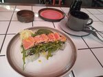 Очень вкусные, большие роллы Филадельфия, но очень дорогие - 4300 за порцию! И за такую цену роллы не полностью обернуты рыбой( Мисо с хорошим наполнением, но пересоленный и прям крохотная порция - около 200 мл. на вид Вкусный чай личи лемонграсс, но тоже дорого 2000 за 600мл И сделайте ремонт в туалете