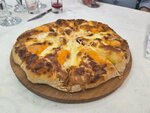Практически ушли из заведения. Если бы это случилось то было бы 0 баллов и, возможно, жалобы в соответствующие инстанции. Заранее сделал бронь на 8ое марта, обсудили по телефону что бронь будет на втором этаже т.к. на первом планируется какое-то мероприятие. Во время звонка уточнил, что на втором этаже будет тихо и можно будет разговаривать. Для нас это важно т.к. собирались спокойно посидеть с семьей. Для брони взяли предоплату 2000р. Когда пришли - в размещении на втором этаже отказали без понятных причин. На первом этаже был корпоратив с огромным столом и очень громкой музыкой, по сути дискотека для одного большого стола человек в 30. Разговаривать и спокойно есть остальным столам просто невозможно. Начал обзванивать другие заведения чтобы переехать и уже собрались уходить - попросил у сотрудников вернуть депозит, т.к. условия брони не соблюдены, на что мне было отказано и после препираний нас все таки посадили на второй этаж. Сидеть там было гораздо уютнее и комфортнее. Было два стола заставленных вещами. Почему сразу не освободили их - не понятно. Практически испортили праздник. По еде - средне. Хинкали переваренные и не сочные, какие-то блюда ниочем, какие-то более менее нормальные. Пицца 4 сыра была сделана скорее как хачапури, но понравилась по вкусу. Она как раз на фото. Домашнее вино понравилось. Несли блюда очень долго, горячее размазали на полтора часа, кому-то принесли сразу, кому-то позже. Люля был через полчаса, хинкали были через час, хачапури через полтора. Все ели в разное время. Вино и морс, кстати, тоже сначала несли не холодные. Из приятного - подарили всем дамам по цветочку, это чуть подняло настроение. Вероятно, стоит поработать над планированием нагрузки. По-хорошему могли бы позвонить и сказать что разместить адекватно не получится, сразу бы смотрел другие варианты.