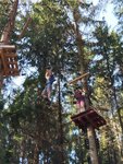 Отличная развлекательная - спортивная программа в парке. Было интересно, весело. Команда сотрудников парка отработала на отлично. Зип спуск очень понравился. Есть площадки для посиделок и приема пищи компанией. Рядом мангалы. Можно заказать доставку готовой еды. Прекрасно что парк открыт к любым вариантам для своих гостей. Парковка есть вдоль дороги. Обязательно иметь спортивную обувь. Парк находится в сосновом бору, поэтому в жаркий день внутри парка довольно комфортно. Гостей меньше в будний день.