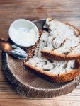 Фермерский творог, мед, сметана, грецкий орех, черничный соус (черника, пектин, сахар-песок), вишня свежемороженая