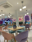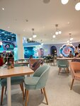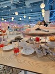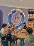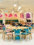 Отличное место! Дети в восторге от всех развлечений, которые имеются здесь, причем прямо в непосредственной близости к полноценному кафе! Можно спокойно оставить детей играть в игровой зоне, а взрослым прогуляться по торговому центру или просто отдохнуть от мирской суеты с чашечкой кофе и вкусными десертами! Основное меню также на высоте, пробовали много различных блюд за все время наших посещений этого приятного заведения. Взрослые также найдут себе занятия в игровой зоне.