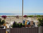 Летняя площадка, ожидание как везде по загрузке. Вид на море. Ночью работает танцплощадка с живым голосом и тамадой. Такси по городским расценкам, но можно и прогуляться.