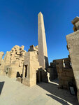 Этот обелиск средний по высоте в Карнакском храме, выстой 22 метра. Выше только обелиск Хатшепсут. Обелиск полностью сохранился с тех времен и не был украден Европейцами и вывезен. Цельный кусок гранита с высеченными иероглифами. Когда идешь от колонного зала кажется, что обелиски равные по высоте, но с другого ракурса точно видна разница в высоте.