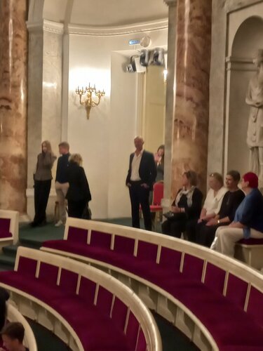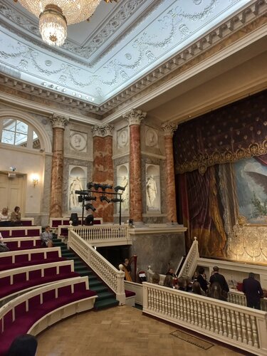 Шикарный театр, камерная такая обстановка, лепнина, картины на потолке, вид на Неву и Петропавловскую крепость) Шикарная люстра. Сам театр мне очень понравился. Буфет - средне, не такой, конечно, как в Новой Мариинке. А сам театр - да, стоит посетить.