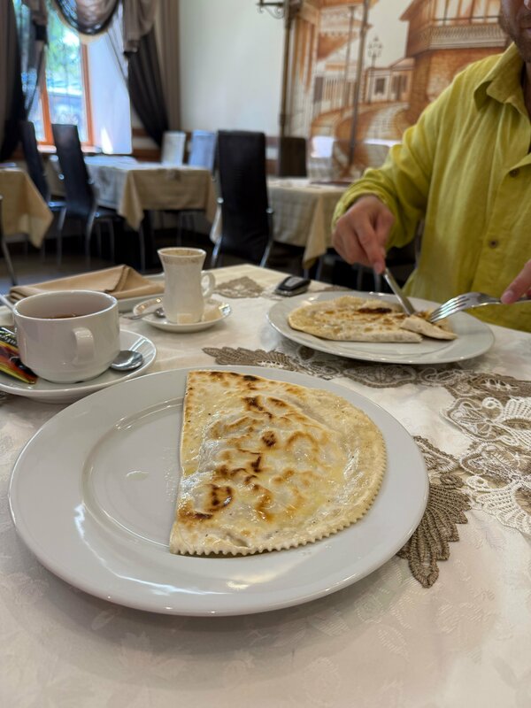 Продолжаем путешествие по Крыму. Хинкали бомба, но нам принесли сырое хачапури, мы отказались есть сырое тесто, после чего нам просто запекали ее, с яйцом уже размешаным и отрезанным куском)) официан вручил это нам, но управляющая сработала профессионально, заменив на другое блюдо. В решении возникших конфликтов плюс звезда, так как официанты вообще не знают стандартов. И все равно хачапури делать не умеют, это скорее булочка с сыром. Сыр не тянется, тесто никакое … сыры идут другие, не кайф. Очень жарко!!! Кондиционер не справляется. Посидели бы ещё выпили чего-нибудь и заказали, но находиться невозможно. Еда - 3/5 Обслуживание - 2/5 Соотношение цена/качество - 3/5 Не рекомендуем к посещению.
