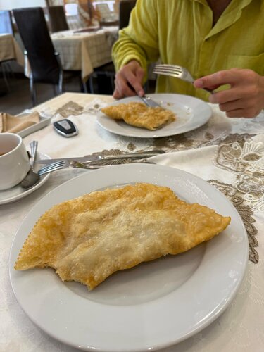 Мало мест где можно покушать поблизости, выбирали по отзывам и не ошиблись! Очень вкусно!!! Очень с душой и любовью готовят и обслуживают! Спасибо за гостеприимство :) Цены низкие в сравнении с другими заведениями, не знаю что там из высокого нашли другие)) да, интерьер старенький, но для здешних мест это далеко не главное. 2 чебурека с бараниной, 2 янтыха с говядиной + чай и кофе 1150 руб.