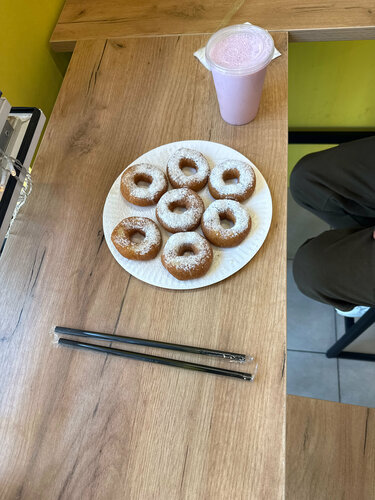 Довольно милое место,все на уровне.Вкусные коктейли, пончики тоже на уровне 8/10 с начинкой 9/10,самые вкусные с нутеллой.Заходили и остались только с положительными эмоциями.Есть место для детей с головоломками.