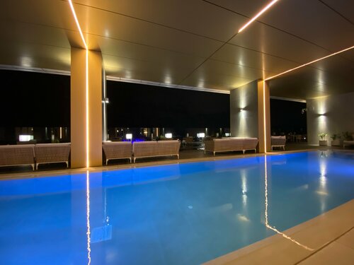 Шикарнейший отель! Останавливались на 1 ночь, потрясающе все! Номер самый современный, огромный, уютный, с невероятно удобной кроватью, очень удобно, что ванная и туалет разделены, есть утюг, фен, все новое, просто 21 век; есть 2 бассейна, на 3-м и на 32-м этажах, есть панорамный бар на 42 этаже, с красивейшим видом на город,работает до 01 ночи, правда в день нашего приезда бар закрылся в 21 час, но мы успеши сделать фотки, завтрак был просто невероятный, с поистине королевским разнообразием напитков и еды, в общем, мы были просто в восторженном экстазе.