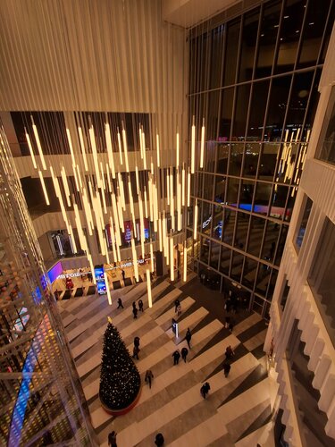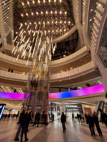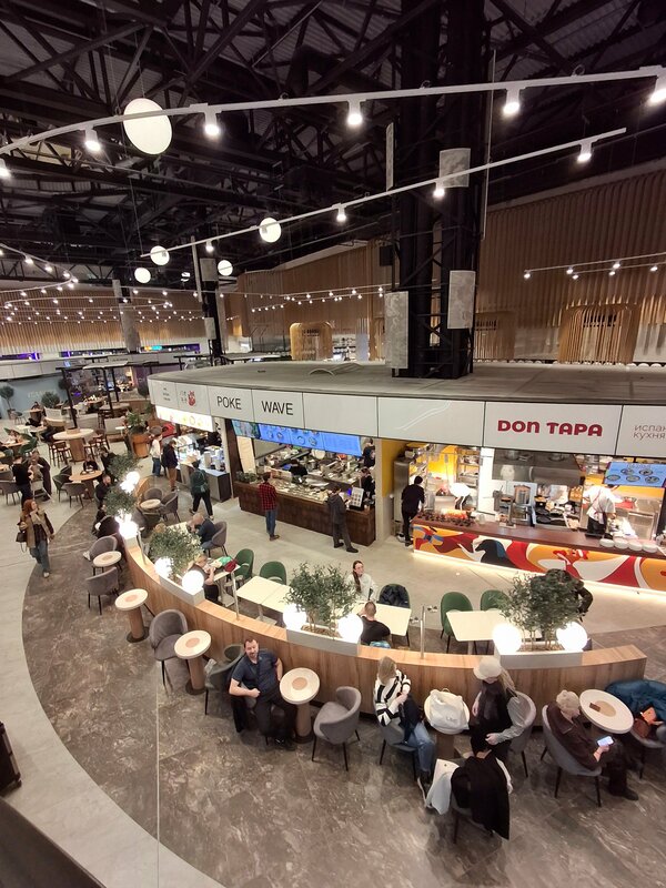 Красивый, просторный торговый центр, была уже несколько раз, особенно нравится ресторанная зона наверху. Можно посидеть и встретиться как с друзьями, так по делами. Большой выбор корнеров и зон для размещения) наверное большая часть моей оценки именно за это. Магазины пока работают далеко не все, но среди открытых, есть заслуживающие внимание. И самое важное мало кто знает, что внизу отличный Перекресток с большим выбором продуктов.