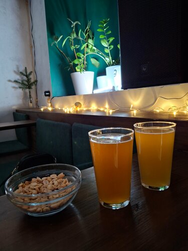 Достаточно стильное заведение для любителей сидра и крафта. Мне нравится интересный интерьер, достаточно немноголюдное и спокойное место для тех кто не любит толпы. Можно со своей едой, но снэки здесь всегда есть, особенно люблю микс орехов. Здесь особенно рады любителям электронной музыки, проводятся диджейские сеты. На кранах всегла разные позиции, тут как повезёт и что любите, бывает прямо всё заходит, а иногда позици, которые не в вашем вкусе, но для этого есть холодильник, где тоже много интересного. Дают попробовать чтобы легче было выбрать) Из моих личных минусов меню кранов 🫠🙈 его очень плохо видно на зеркале. Но это я слепая зануда 😆