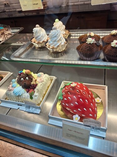 Очень люблю это кафе, кондитерскую. Ей уже много много лет и наверное у меня еще теплые ассоциации детства и юности, когда я ходила сюда с родителями и друзьями. В Санкт-Петербурге не так много заведений, которые спустя годы сохраняют качество сервиса, а главное продукции. За Тройку могу получиться) пирожные и торты всегда очень вкусные, многие любители специально приезжают сюда за ними и еще заказывают заранее. Я могу сказать про кулинарию, она у них всегда вкусная, плюс большим бонусом вечерняя скидка, если кто-то вечером проходит мимо. Да и просто зайти на чашечку кофе или горячего шоколада рекомендую в любое время года 🍰☕️