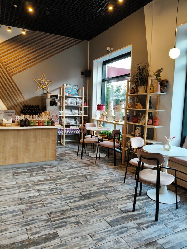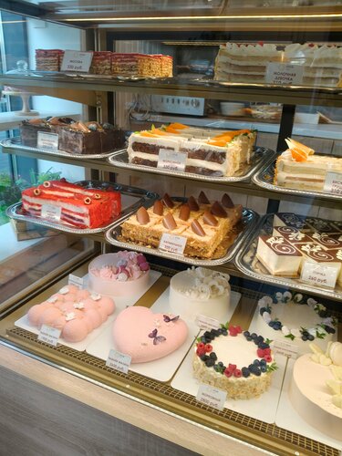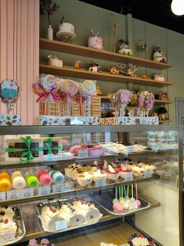 Сладкая сказка в бетонном городе. Помещение просторное, десертов много, разных. Можно заказать чай, кофе и посидеть, глядя на улицу в панорамное окно. Думаю, что в дождливый день это ещё приятнее