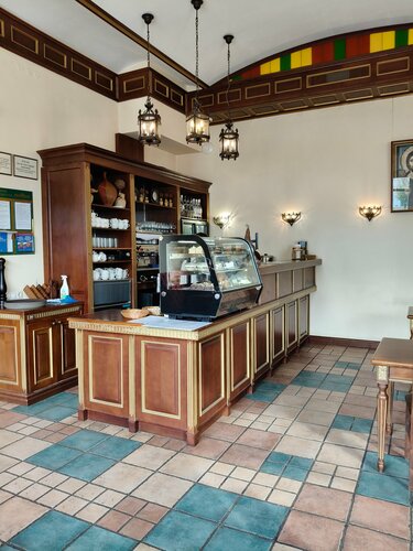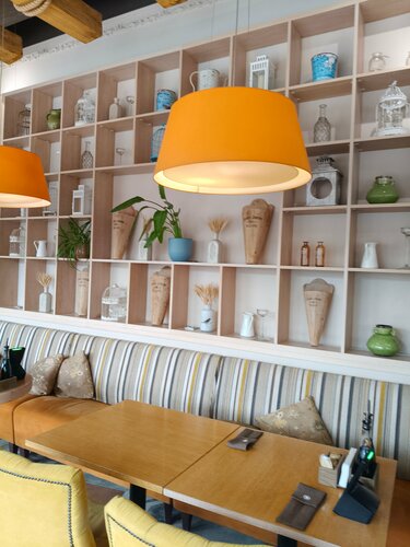 Если вы находитесь рядом с ЖД вокзалом в г. Липецк и вам нужно подкрепиться,то вам сюда. Это кафе самообслуживания и быстрого питания. На стойке раздачи вы выбираете блюда, далее проходите к кассе и оплачиваете. Минус в том, что цены на блюда вы можете увидеть только,если решитесь изучать 9 листов меню, которое расположено рядом со входом. Выбор большой и цены более чем адекватные. Салат, рис с овощами, брокколи и мясная котлета стоили около 400₽ (сентябрь 2025). Несколько залов, есть летняя веранда, с пятницу и субботу можно потанцевать вечером. Администраторы приветливые, я попросила стакан воды и его принесли без всяких проблем.