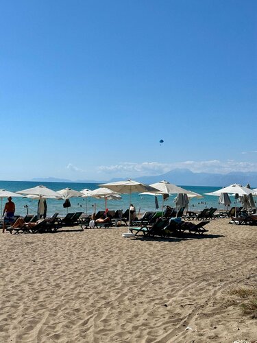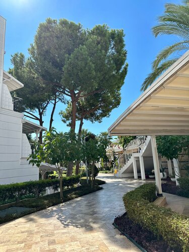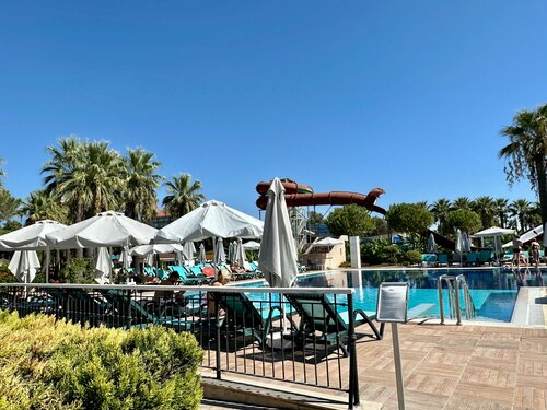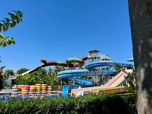 Отель расположен неподалеку от аэропорта Анталии, примерно в получасе езды. Впечатления остались приятные, хотя есть моменты, достойные внимания. Преимущества: • Просторная территория с множеством удобных зон отдыха: лежаки раскиданы по всей территории, включая зоны возле бассейнов, ресторанов и зеленых уголков сада. Благоустроенная зеленая территория с разными растениями, кустарниками и цветами. • Прекрасный пляж с удобным доступом к морю. Особенно понравился заход слева от основного входа — там меньше камней и больше чистого песчаного покрытия. Сам песок регулярно очищается персоналом, благодаря чему поддерживается чистота. Есть кабинки, где можно переодеться и помыть ноги от песка. • Хороший номерной фонд: просторные комнаты оснащены всеми необходимыми средствами гигиены, полотенец достаточно, а также имеются качественные косметические наборы. Wi-Fi работает стабильно, однако скорость падает при большом количестве пользователей сети одновременно. Уборка проводилась ежедневно, но, как понял, лучше стараться уходить утром и вешать табличку с необходимостью уборки, так как в один день вышли позже и номер в течение дня вообще не убрали. Так же есть бесплатный мини бар с напитками и сейф для хранения документов/ вещей. • Питание разнообразное и вкусное, представлена концепция шведского стола. Однако, напитки придется заказывать отдельно у официантов, либо самостоятельно подходить к бару. Хочется отметить бесплатное мороженое. Оно находилось в двух местах: у пляжа - в зоне у основного бассейна и в самом отеле. Отличные детские сладости — вафли с наполнителями и шоколадом. • Вежливый и доброжелательный персонал. Говорили в основном на ресепшене на русском и на турецком/ английском языке. При входе в зону ресторана всегда поприветствуют вас. • В отеле есть рестораны аля-карт, которые не посещали, и вечерняя анимация. Недостатки: • Некоторым зонам отеля требуется обновление, особенно в общих помещениях: изношенные двери, старые элементы отделки стен и полов. • Время работы отдельных сервисов ограничено: бары, мороженое, водные развлечения функционируют лишь в установленное расписание, из-за чего гости вынуждены ожидать начала работы указанных зон. • Уровень звукоизоляции номеров оставляет желать лучшего. Иногда слышны громкие разговоры соседей, звуки шагов, а ночью мешает прибытие автобусов с туристами прямо напротив главного входа. Если же, номер будет выходить во двор. • Развлекательная инфраструктура включает аквапарк с несколькими небольшими водными горками, которые скорее подойдут детям и подросткам. Их разнообразие и масштабы значительно уступают аналогичным объектам в других крупных отелях. Взрослым гостям, предпочитающим динамичные спуски и острые ощущения, местные водные аттракционы вряд ли покажутся интересными. Разочаровали. Сходили только один раз. Тем не менее, учитывая соотношение цены и качества, отель вполне оправдывает ожидания и обеспечивает комфортный отдых.