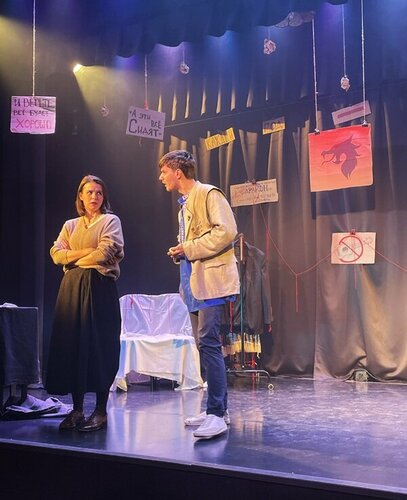 Смотрела в театре спектакль "Дракон" по одноименной пьесе Евгения Шварца (режиссер Ольга Иванова). Тема, поднятая в спектакле, актуальна до сих пор: быть свободным, или идти на поводу у других? Жить по привычке как все, или выделится из толпы и идти своим путём? Красные нити, используемые в спектакле, связывают людей. Люди- марионетки в чьих-то руках. Удастся ли разорвать эти нити? - Правда? Я сам не говорю правды уже столько лет, что и забыл какая она правда - очень метко звучат эти слова из уст бургомистра. Много образов, тонких намёков, сатиры. Очень в тему звучит музыка, усиливая впечатление от увиденного на сцене. Минимум декораций, оригинальные костюмы, прекрасная игра всех актёров. Было и смешно и грустно одновременно. Спектакль получился просто бомбический! Смесь драмы и фэнтези в современной интерпретации. Очень современно, оригинально и музыкально, всё как любят молодые люди. Я хоть и немолода, но осталась под впечатлением. Единственный минус для меня, но это "беда" всех современных камерных площадок, очень неудобные стулья. Надеюсь это временное неудобство.