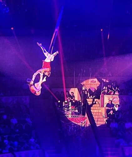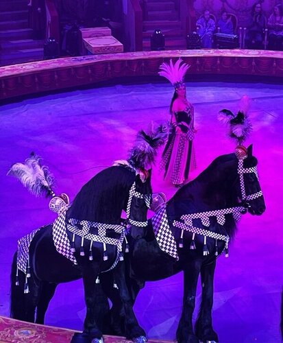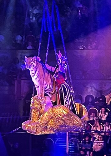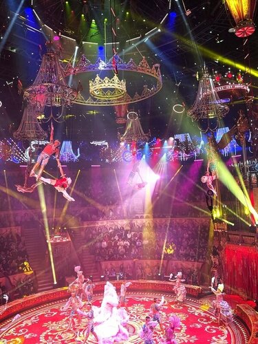 Недавно посмотрела восхитительно-волшебное шоу "Королевский цирк" Гии Эрадце в цирке на Фонтанке в СПб. Каждый номер в «Королевском цирке Гии Эрадзе» это шедевр, отдельная оригинальная история. Представление яркое, музыкальное, красочное. Забыла, что мне 50+, и сидела, открыв широко глаза и рот. За 3 часа отхлопала ладошки. Воздушные гимнасты были великолепны! Очень понравился номер "Кто я?" в исполнение Виталия Кацеро. Сбылась моя мечта увидеть номер "Анна" воздушных гимнастов Елены Мизениной и · Дмитрия Ефремкина. Сердце замирает, когда смотришь этот номер. Гимнасты работают без страховки. Вы видели летающего тигра? Он есть в "Королевском цирке"! У Людмилы Сурковой - укротительницы тигров очень оригинальный номер. Лошади и, если не ошибаюсь яки (с огромными рогами) поразили своей ухоженностью. Задалась вопросом: сколько часов их расчёсывают перед выступлением? Всё представление зрителей веселил клоун "Мик" - Николай Кормильцев и Мария Кремель - исполнительница роли Принчипессы. И ещё, хочется сказать, что в "Королевском цирке" всё по королевски. Даже панталоны у артисток в виде короны :)