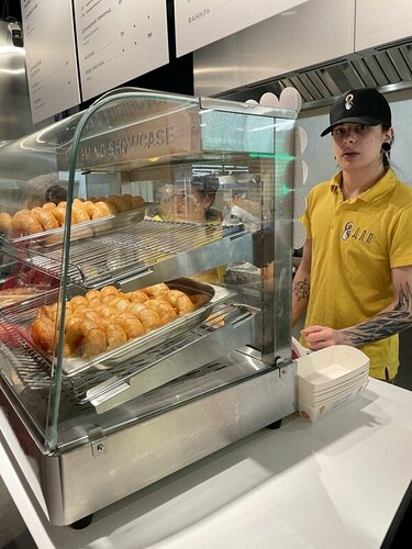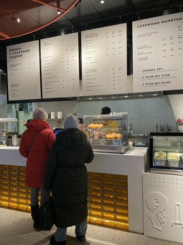 Выиграла в конкурсе бочковой кофе в ДЛП. Начиталась отзывов, что там очень вкусные пышки, а пышки я люблю. Была в театре на Нарвской и решила получить свой приз. Место для пышечной очень удачное, рядом метро, кафе на первом этаже. Оформление зала очень стильное. Бочковой кофе вкусный, В меру сладкий, не сильно горячий. Пышки тоже неплохие. Попробовала сырное мороженое на сливках. Не сливок, не сыра. Одно название. На этом все плюсы закончились. Оказывается мелким шрифтом написано, что кофе в подарок, если заказ дороже 390. Я это узнала на кассе. Долго искала сообщение. Народ стал возмущаться, что 3 человека за прилавком, а очередь не с места. Сделала заказ. Продавец сказала: а вы набрали на 390? Нет, чтобы сказать: возьмите орешки, или трубочки до нужной суммы. Я психанула и оплатила кофе. Так что подарок оказался не подарок! Хочется, чтобы обратили внимание на работу обслуживающего персонала. Три человека за прилавком, а толку ноль. Работают очень медленно. Не здороваются с клиентами. Столики грязные (в пудре). Пришлось обтирать самой салфеткой. На столах не убрана использованная посуда. Контейнер с мусором переполнен. Подносы мокрые, не вытираются. Лично мне неприятно есть в таком месте.