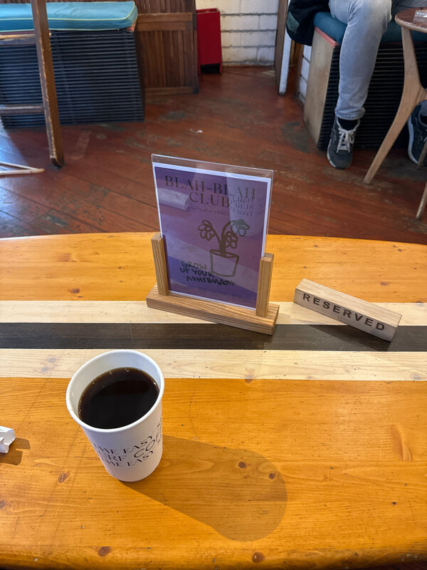 Пришли, заказали, сели. Взяли фильтр и один десерт, фильтр сильно горчит. Спустя 5 минут начался цирк: подошла девушка, сказала, что на месте, где мы сидим, будет английский разговорный клуб. Поскольку мест свободных не было, мы отказались пересаживаться. Подошел сотрудник, поставил табличку и буквально попросил свалить. Шок. Они продолбались с бронью стола и считают в порядке вещей выгонять гостей, не предложив взамен места.
