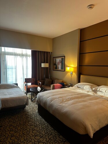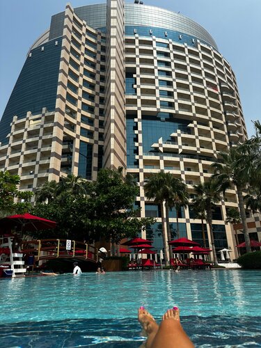 Очень много отдыхающих в этом отеле. Все очень понравилось, особенно номера. На 3 взрослых взяли номер на 32 этаже (2 комнаты). Вид с балкона на город, шумоизоляция хорошая. Расположение прекрасное, от метро пару метров, все магазины в шаговой доступности. На море возят по запросу, также по запросу приносят: постельные и банные принадлежности на 3 человека, так что предупреждайте заранее на ресепшен, что Вас 3 или 4, чтобы в номере все было. Депозит 500 дирхам+ налог. Об этом при бронировании ни слова не сказано. В целом остались довольны.
