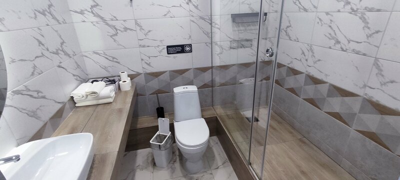 Отличная гостиница, останавливались вначале марта помимо нас был занят только 1 номер, есть все необходимые средства для душа, есть телевизор со смарт ТВ. Не хватает только второй мусорки рядом со столиком. Рядом есть неплохое кафе