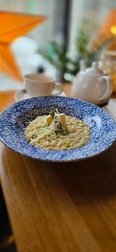 Мне понравилось! Уютная обстановка. Отлично подобрано сочетание старых предметов интерьера и современный дизайн. Приятная тихая музыка. Расположился я за маленьким столиком с видом на Московский проспект. Большой выбор блюд разных народов. Можно выбрать под своё текущее желание. Я пришёл позавтракать и остался на яичнице с беконом, помидорами и грибами 🍳 А ещё сегодня очень хотелось попробовать ризотто с камамбером и артишоком. Очень вежливый и внимательный официант Рустам принял заказ, по моему запросу принёс таблицу с указанием калорийности блюд. Через четырнадцать минут прекрасная яичница с беконом была у меня на столе! После того, как я закончил с завтраком и передышкой в пару минут приступил к ризотто, оно тоже было восхитительно! В кафе несколько залов и отдельное помещение для банкетов на 10-12 человек. Есть отличная детская игровая комната. Работает интернет, правда, для подключения к Wi-Fi нужен пароль, который я узнал у официанта. В зале у окна мне было немного прохладно, списал это на то, что за окном минус девять, и пришёл сразу после открытия. Рядом есть большая бесплатная парковка 🅿️
