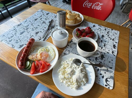 К сожалению не фотографировал завтрак, а он красивый и вкусный. Брали итальянский и английский, кофе, десерты. Все очень вкусно. Персонал вежливый, время ожидания еды - приемлемое, ни долго, ни быстро. Кофе вкусный, сан Себастьян один из лучших что я пробовал.
