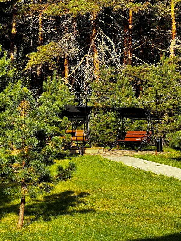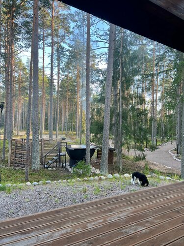 Добрый день! Отдыхали на базе 17-24 августа в коттедже Грандис. Уезжая, долго общались с администратором и высказали все свои впечатления и пожелания. Коттедж отличный, оснащен всей необходимой кухонной техникой (плита, духовка, чайник, микроволновка, кофемашина). Для любителей домашней кухни и семьям с маленькими детьми это удобно! В момент заезда у нас поинтересовались любим ли мы пить кофе и на наше "да" отсыпали нам кучу кофе-капсул. Мелочь - а приятно! Внутри домик удобно спланирован - спальни в одной части, кухонно-гостиная зона в другой. Много разного света и подсветок. Сплиты в каждой спальне и гостиной. В гостиной мягкий диван, но он не раскладывается и спать на нем не удобно, да и комфортно расположиться могут только 2 человека. Так что позицию этого коттеджа 4+1 мы не подтверждаем. Пожелание заменить диван и его расположение приняли к сведению. И еще хотелось бы в больших коттеджах предусматривать два санузла. Для большой семьи одного совмещенного санузла недостаточно. И ещё добавить пледиков, для посиделок на веранде в прохладные вечера. В целом, оснащение и комфорт в домиках на отлично! Коттеджи находятся на комфортном расстоянии друг от друга, отдыхая на веранде ни кто ни кого не видит. Рядом с верандой есть чан, который нам грели дважды (один был как комплимент за ожидание уборки домика при заезде). Приятные посиделки в теплой водичке отлично коротают прохладные вечера. На базе принимают к размещению с домашними животными – это большой плюс! В каждом домике жили четвероногие (собаки, коты). При чем, на ресепшен вам и выдадут пакетики для сбора отходов их жизнедеятельности. Территория – супер! - чистый лес с устроенными дорожками. Черника ковром. Мы каждое утро начинали с зарядки – сбора стаканчика ягоды на завтрак. Даже наша собака с удовольствием лопала чернику! Были слегка разочарованы, что в августе не успел заработать ресторан, но на территории есть домик в котором можно было купить еду (суп, фри, нагетсы и пр...). Это немного выручило, молодежи это нравится, а ужины проходили у мангала. Представляем себе, что когда ресторан заработает, то там возможно будут проводиться и какие-то тематические вечера. Другие базы, деревни, магазины находятся на достаточном расстоянии от этого места, что добавляет тишины и уединенности. Один раз возникла необходимость найти аптеку, так нас безвозмездно туда свозили. На территории еще идут ремонтно-строительные работы, но в период нашего пребывания было тихо. Команде клуба, молодой и амбициозной, желаем успешного развития! Мы не очень любим дважды останавливаться в одном и том же месте, но это будем рассматривать для отдыха в следующем году.