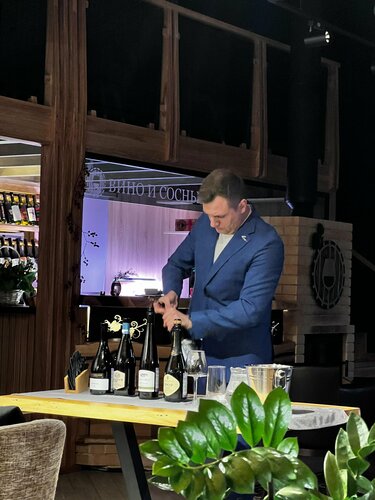 Всем желающим провести тихие, уютные выходные сюда! Это был чудесный week and! Как то случайно наткнулась на это место, оказались свободные домики на нужные нам даты. Приятное впечатление началось с самого въезда…. 1. Ресепшен находится в здании ресторана, но к вам на встречу выходит персонал и провожает к домику. Коттеджи расположены по периметру территории , расположены так, что отдыхая на веранде ни кто не видит соседей. Только один коттедж (N10) имеет чан, в котором можно погреться. 2. Коттедж внутри грамотно зонирован - небольшая кухонная зона (с мойкой, холодильником, чайником), кровать, диванчик (раскладной). Санузел со всей необходимой косметикой и принадлежностями. Что приятно - мыло, гель, кондиционер в больших емкостях, с не в крошечных пузырьках. Теплые полы. Сплит. Телевизор. 3 . Территория ( сосновый бор с ковром из мха) огорожена легким забором, в котором есть калиточка, через которую можно выйти в лес. За территорией сплошные сосновые леса, в которых можно просто гулять и лакомиться брусникой и грибочки собирать, можно на лошадях покататься. Есть зона с костровой чашей у которой мы с другими отдыхающими , после сытного ужина, продолжили общение. Пожелание - на повороте к клубу установить дорожное зеркало. Поворот острый, дорога узкая, а машины гоняют разные. 4. Ресторан - все просто, уютно , по-домашнему. Здесь нет возможности заказать блюда по меню, на завтрак , обед и ужин предлагаются только утвержденные шеф-поваром сеты, разные каждый день. Нам такой подход понравился - сильно сокращает время выбора блюд. Закуска, салат, основное блюдо, чай с десертом. Кто-то писал, что неудобно в случае если к примеру предлагается рыба, которую кто-то не употребляет. Все решается на месте, вам индивидуально предложат альтернативу. И главное! Изюминка этого клуба - вино! Только вино! Других напитков здесь нет! Вино только отечественных виноделов. Здесь можно посетить старый советский бункер, который теперь переоборудован в винный погреб! По субботам проводятся тематические ужины в компании сомелье, который рассказывает о винах, предлагает их к дегустации. Мы остались под самым приятным впечатлением от проверенного здесь времени и все благодаря команде клуба . Александр, Ольга, Илья - большое вам спасибо, что так внимательно относитесь к своим гостям! Без пафоса и амбиций владельцы клуба сами помогают вам донести вещи до домика, ухаживают за вами в ресторане , проводят экскурсию и гастро-ужины. Возможно мой отзыв покажется сильно сладким, но такое вот у нас осталось приятное послевкусие от этих выходных. На наш взгляд, свои 4* клуб оправдывает на 100%. Здесь царит добрая и интеллигентная атмосфера. Мы однозначно рекомендуем это место для посещения! И сами ещё не раз сюда вернемся!