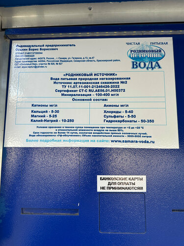 1. Посетил 16.04.2025 год 2. Недалеко от дороги 3. Вода чуть лучше чем из под крана см.показатели 4. Местные просто набирают, спрашиваю, они говорят нормальная. 5. В автомате с хорошими фильтрами 020 +- всегда 6. Удобно 7. Проездом набрал для кипячения пойдет