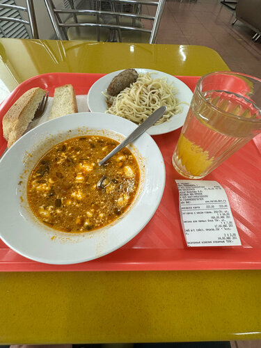 1. Посетил 21.04.2025 год 2. Стоимость на фото 494 руб. 3. Кухня стандартная +- персонал хороший 4. В зале не очень чисто ПЛЕСЕНЬ НА СТЕНЕ см.фото, треснутые секты, пятна потолке 5. Суп подают в битых тарелках, аж с 3-сторон см.фото 6. Работают до 17:00, но после 15:00 только выпечка для продажи. Расписание работы на двери здании не увидал 7. Не рекомендую к посещению Средний чек 400 руб. Апрель 2025 год