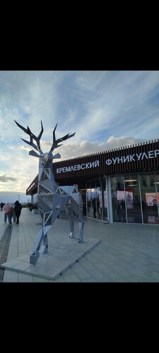 Поднялись на фуникулере наверх. Станция так и называется - Верхняя и находится на территории Нижегородского кремля. В павильоне станции представлена информация для ознакомления с Кремлем и городом. У самой станции установлена фигура оленя, символ Нижнего Новгорода. Скульптура необычная, современная. Красивые фото получились на память.