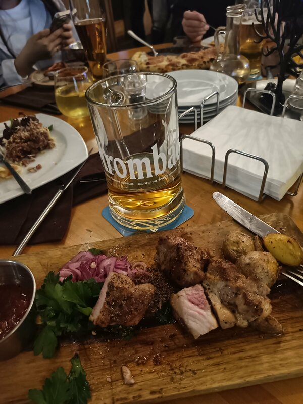 Шашлык, как я понял - это жаренная свинина на сковородке, ну ладно, бывает, но дожарить не смогли даже со второго раза. Пиво отвратительное, несвежее, выбора практически нет.