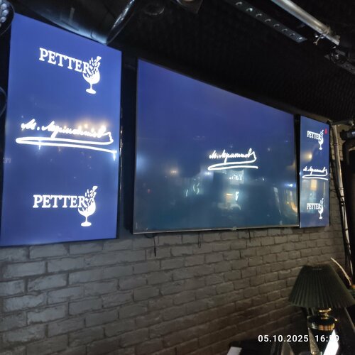 Расположенное удобно по улице и комфортное внутри место. Проводятся различные концерты и выступления часто; вся информация на сайте и в социальных сетях. Меню соответствует заявленной концепции Petter. Оригинальный дизайн. Вежливое и ненавязчивое обслуживание. Туалет общий.