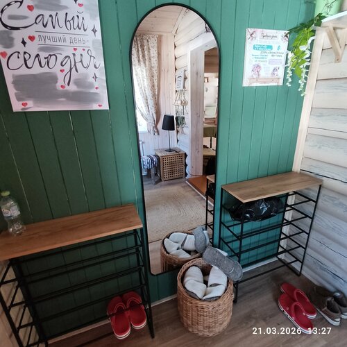 Уютное и спокойное место: просторная и красивая территория, несколько двухэтажных домиков, отдельно столовая и зал для занятий и коллективных просмотров, баня, костровые площадки, беседка. Предусмотрена сменная обувь: тапочки в домиках и в столовой. В домиках холодильник, микроволновка, чайник и кофеварка, посуда. Отдельная благодарность за комплимент от Мелодии - носочки с сердечками. И в целом Там всё пропитано радостью. Сделано с любовью, девиз Мелодии Леса.
