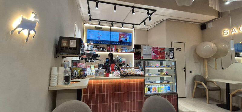 Хорошая кофейня: хорошо готовят все представленные в меню напитки, есть авторские напитки — как кофейные, так и чайные. Есть выбор сладостей и небольшой выбор горячих блюд. Также есть микроволновка, возможность бесплатно взять стаканчик питьевой воды. Ещё в кофейне светлый приятный интерьер, свежий ремонт, четыре столика, рядом с каждым столиком есть розетка, опрятный санузел.