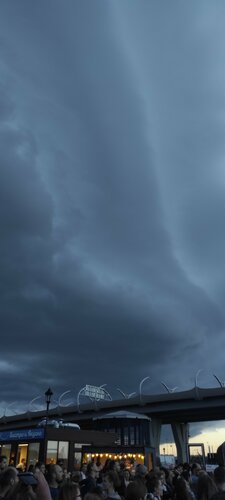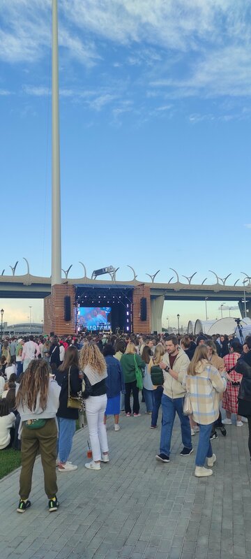 Классное место, прям у моря. Метро в 5 секундах, достаточно много газона, много неба. По мосту едут грузовики. Была на концерте Сироткина, попали под ливень и были счастливы 🥹