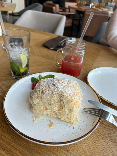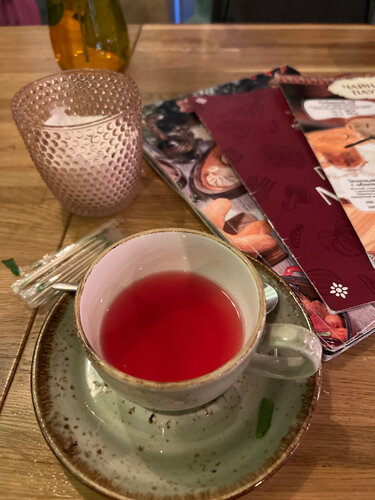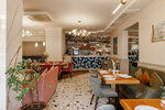 Небольшое кафе, посадочных мест немного, расположены близко друг к другу. Но есть посреди зала большой стол! Персонал приветливый, вежливый. Официант хорош: знает подробно, из чего и как сделано каждое блюдо, интересно про всё рассказывает и объясняет. Подача многих блюд необычная, своеобразная. Еда вкусная. P.S.: Жаль, если только из-за одного неадекватного прошлогоднего отзыва рейтинг кафе снизился до 4х звезд.