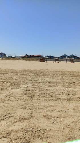 Каменный пляж, вернее сказать камни это спрессованные ракушки. Вообще ничего хорошего. Ни капельки не детский пляж. Спуск лестница, немного пройдёшь и уже по шею. Раздевалок нет, одна с советский времён оставшаяся, состояние кошмар. Один плюс душ от серного источника.