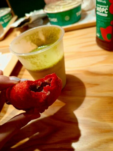 Всегда заказывали тут только напитки, они необычные и в большинстве своём очень вкусные. В последний раз дочка решила заказать еду. И к сожалению нас постигло разочарование. От одного запаха (морской рыбы и чего-то затхлого) становилось не возможно есть блюдо. Не можем сказать что продукты несвежие. Вероятно просто специфика данной кухни, к которой не были готовы. По вкусу тоже не впечатлило- резиновый кусок чего-то очень скользкого и с душком. Пока экспериментировать нет желания, возможно в дальнейшем попробуем другие позиции более привычные. В любом случае, спасибо за возможность попробовать нечто новое в нашем городе.