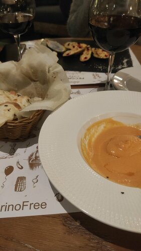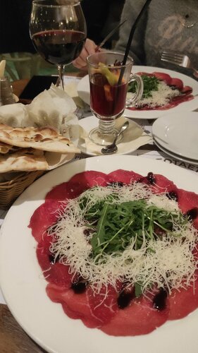 20 лет назад перекусили здесь, с друзьями, после прогулки на теплоходе. Тогда нам понравилась атмосфера и кухня. И вот спустя 20 лет решили снова сходить в данное заведение. Накануне изучил меню на сайте, наметил для себя интересные блюда, но не смог найти информацию по напиткам (все страницы пустые). Заказали столик, приехали на место, где нас встретила официантка и провела к столику. Посетителей не много. Интерьер претерпел изменения (ресторан уменьшился). Подали меню и барную карту и тут оказалось, что выбор напитков очень скудный. Заказали, пока ждали остальных друзей, минестроне, фокачча с чесноком и бокал вина, а так же два пива (из трёх) заказали моя супруга и наш друг. Супчик и лепëшка идеальны. Вино очень напомнило, то которое пили в прошлый раз. Но когда все были в сборе, решили переместиться в другое место, где есть выбор алкоголя... В целом впечатление хорошее, кухня отменная. Заведение, скорее, для тихих посиделок.
